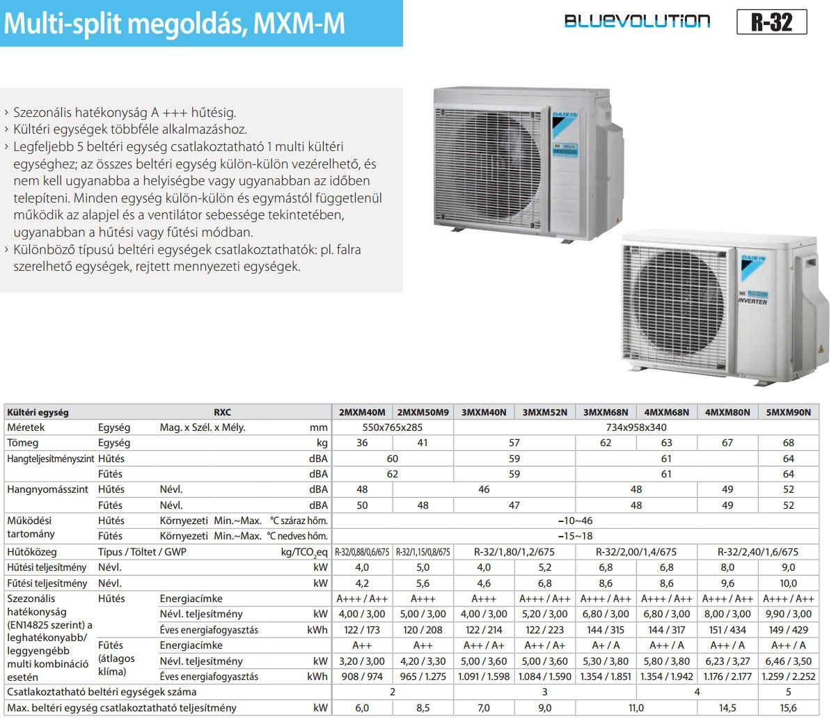 A Daikin 3MXM68A8 Multi klíma kültéri egység (max. 3 beltéri egységhez) fontos tulajdonságai: