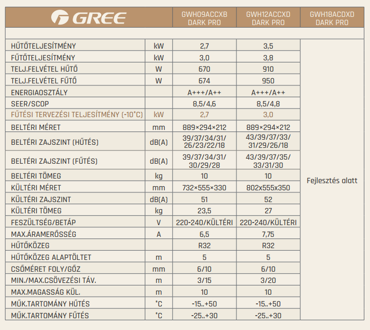 A Gree GWH09ACCXB Dark Pro Inverteres Split klíma fontos tulajdonságai:
