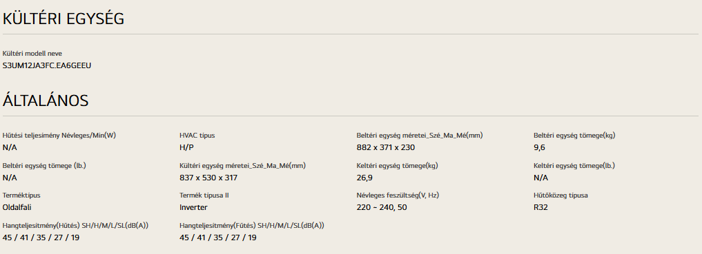 • Kivitel : Oldalfali inverteres klíma