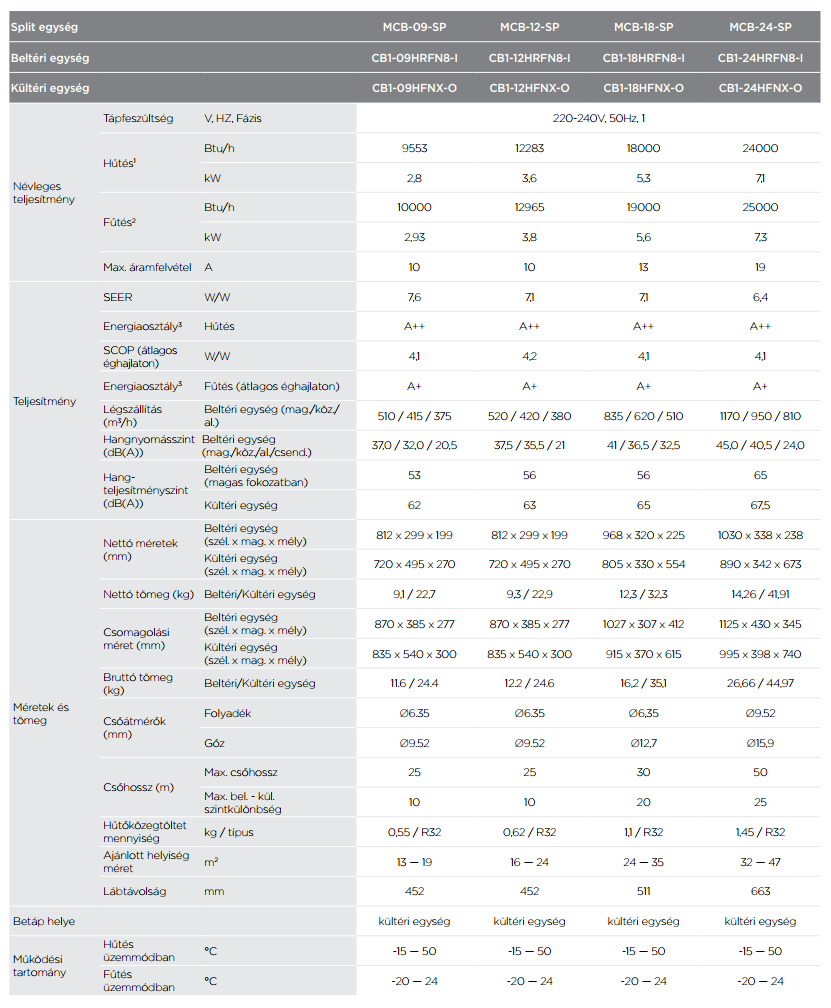 - Hűtő teljesítmény : 3,6 kW