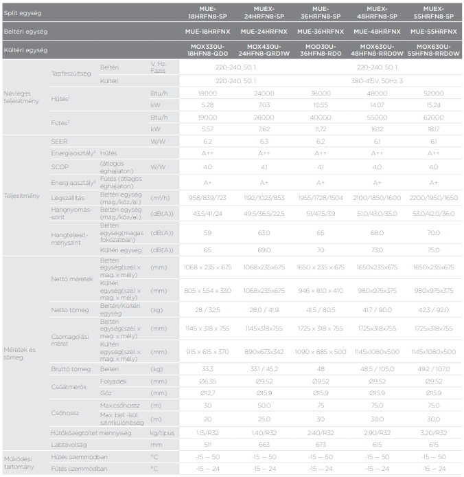 A Midea MUEX-24HRFN8-SP parapet-mennyezeti split (R32, 7,1 kW) fontos tulajdonságai: